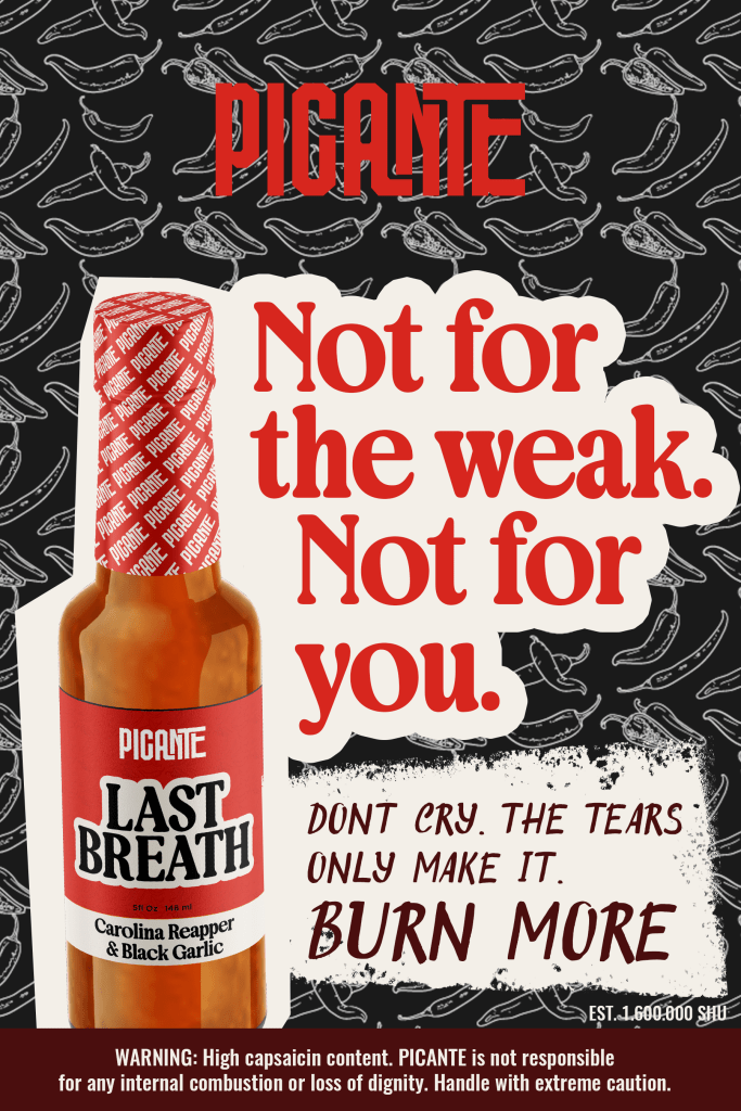Réinventer l’identité d’une sauce piquante à travers un branding provocateur et une direction artistique « High Heat ». Picante, c’est l’expérience de la brûlure pure, emballée dans un design qui mélange codes rétro, minimalisme et ironie.